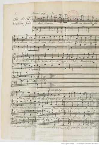 Fait partie d'une livraison: MERCURE DE FRANCE, / DÉDIÉ AU ROY. / AOUST. 1731. (Google Books)Fait partie d'une section: NOUVELLES LITTERAIRES DES BEAUX ARTS, &c.Est associée à un texte: CHANSON.Titre: