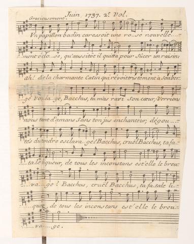Fait partie d'une livraison: ¦ Mercure de France – juin 1737 (vol. 2) ¦ (Google Books)Est associée à un texte: CHANSON, Mise en Musique par M. Rousseau, à Chambery.Titre: